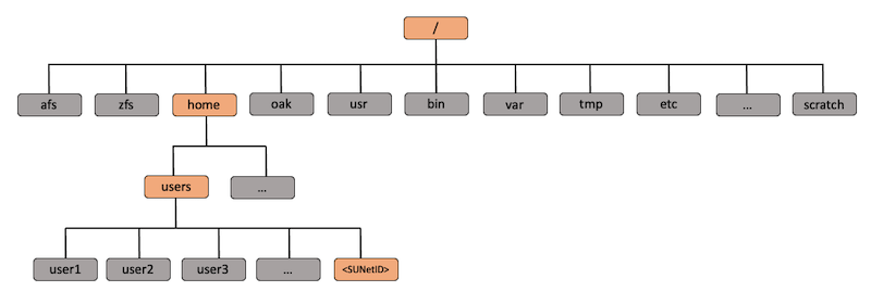 pwd, you can see that~is an alias for the absolute path/home/users/<SUNetID>, as illustrated in the following file system diagram: