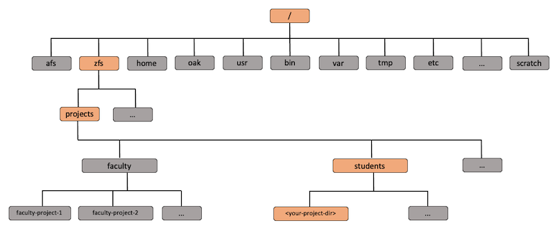 /zfs/projects/students/<Student-SUNetID>-<Project-Name> - The following file system diagram illustrates where these directories are housed on ZFS: