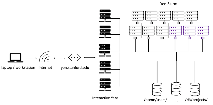 ssh’ing into the addressyen.stanford.eduautomatically picks a server for you- To log specifically into Yen4, use